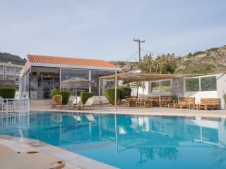Das Maroula Blue Studios & Suites in Faliraki bietet Ihnen einen erholsamen Aufenthalt mit einem saisonalen Außenpool und herrlichem Meerblick. Genießen Sie die Sonne auf der Sonnenterrasse mit Blick auf den Pool und gönnen Sie sich an der Bar ein erfrischendes Getränk. WLAN und Privatparkplätze stehen Ihnen kostenfrei zur Verfügung. Die klimatisierten Zimmer sind mit Sat-TV und einem Wasserkocher ausgestattet. Das Zentrum von Faliraki ist nur einen 15-minütigen Spaziergang entfernt. Freuen Sie sich auf leichte Snacks an der Snackbar und ein kontinentales Frühstück. Entspannen Sie auf den Liegestühlen am Poolbereich und nutzen Sie den Fahrradverleih und die Autovermietung der Pension. Der Flughafen Rhodos ist nur 12 km entfernt.