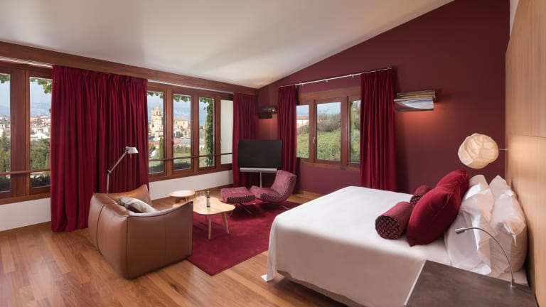 ALLE ZIMMERANNEHMLICHKEITEN UND INTERNETOPTIONEN Ein Aufenthalt im Hotel Marqués de Riscal ist ein einzigartiges Erlebnis. Frank O. Gehrys avantgardistischer, neoklassizistischer Stil zieht sich durch das gesamte Hotel und gewährt Pracht, Freude und überraschende Momente auf Schritt und Tritt. Von den Wolkenlampen aus weißen Stoffballons neben dem Bett über die geräumigen Badezimmer aus grünem und schwarzem italienischen Marmor bis hin zu den Verdunkelungsvorhängen, die Langschläfer vor der hellen Morgensonne bewahren – jedes Detail wurde konzipiert, um unsere Gäste zu erfreuen und zu inspirieren. Zu Ehren der außergewöhnlichen Tradition der regionalen Weinproduktion erhält jeder Gast zur Ankunft eine kostenlose Flasche Wein. Sie finden alle erforderlichen Aspekte hochmoderner Technologie, darunter Fernseher, kabellosen High-Speed Internetanschluss, VoIP-Telefone und Voicemail. Unsere Suiten verfügen darüber hinaus über Kaffeemaschinen von Nespresso und elektrische Wasserkocher von Porsche Design. Für das Wohl unserer jüngsten Gäste ist ebenfalls gesorgt, mit besonderen Pflegeprodukten, Flaschenwärmern sowie Abdeckungen von Kanten und Steckdosen. Unsere Gäste genießen kostenfreien Zugang zu den offenen Bereichen des Vinothérapie® SPA Caudalie Marqués de Riscal: dem Innenpool, dem Entspannungsbereich, dem Dampfbad, dem Fitness-Center, dem Whirlpool und dem Pediluvium, unserem traditionellen Fußbad. Genießen Sie Ihren nächsten Aufenthalt in diesem Luxury Collection Hotel mit Nichtraucherzimmern.