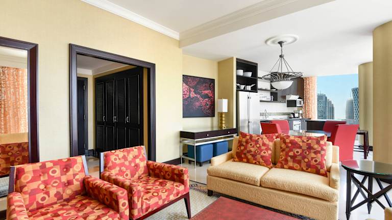 Das Marriott Marquis City Center Doha Hotel befindet sich zentral in Doha, etwa 15 km vom Flughafen und ca. 1 km vom Strand entfernt, in der Nähe des Stadtzentrums.