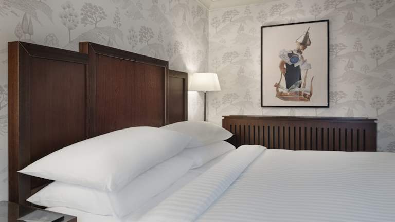 Das Hotel bietet insgesamt 132 Nichtraucherzimmer und 16 Suiten, die auf 3 Etagen verteilt sind und mit einem Aufzug erreichbar sind. Die Zimmer sind komfortabel eingerichtet und verfügen über Klimaanlage, individuell steuerbare Heizung, Kingsize-Betten, Sofabetten, Safe, Minibar, Schreibtisch, Mikrowelle, Tee- und Kaffeezubehör, Telefon, Sat-TV, Radio und kostenloses WLAN. Die Badezimmer sind mit Dusche, Badewanne, Haartrockner und Bademänteln ausgestattet.