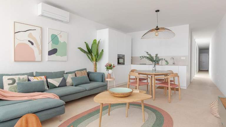 Die Ferienwohnung umfasst 3 Schlafzimmer, ein Wohnzimmer, eine voll ausgestattete Küche mit Kühlschrank und Kaffeemaschine sowie 2 Badezimmer mit Dusche und Haartrockner. Zur Ausstattung gehören außerdem Klimaanlage, Handtücher und Bettwäsche. Eine Terrasse ist ebenfalls verfügbar.