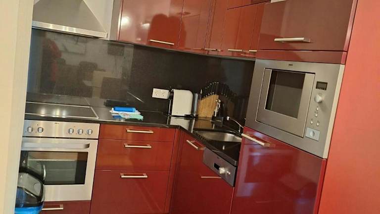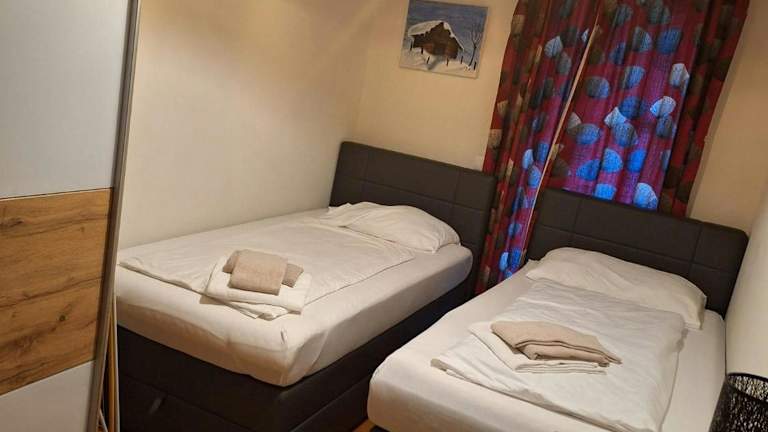 Die Ferienwohnung verfügt über zwei Schlafzimmer sowie eine Küche, die mit einem Kühlschrank und einem Ofen ausgestattet ist. Ein Badezimmer mit Dusche und Haartrockner ist ebenfalls vorhanden.