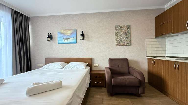 Die Apartments im Orbi Beach Tower APART-HOTEL SEA 26 Floor sind geräumig und bieten eine moderne Einrichtung mit allen Annehmlichkeiten, die Sie für einen komfortablen Aufenthalt benötigen. Jedes Apartment verfügt über eine voll ausgestattete Küche, ein eigenes Badezimmer und einen Balkon mit herrlichem Bergblick. WLAN ist in allen Bereichen kostenfrei verfügbar.