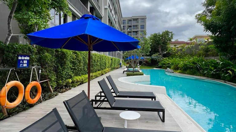 Marvest Condo Hua Hin for rent bietet Übernachtungsmöglichkeiten mit Blick auf den Pool. Die Unterkunft umfasst einen Außenpool, einen Garten sowie einen kostenlosen Privatparkplatz und ist klimatisiert. Die Ferienwohnung verfügt über einen eigenen Pool und einen Balkon.