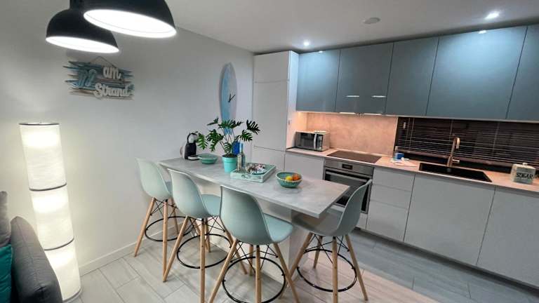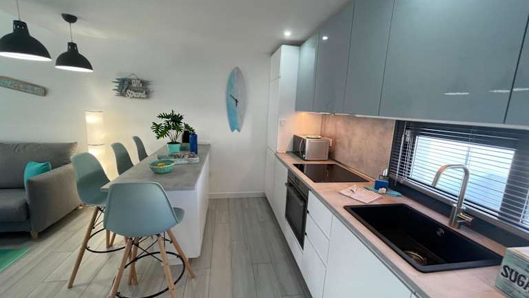 Die Ferienwohnung verfügt über ein Schlafzimmer, ein Wohnzimmer und eine voll ausgestattete Küche mit Kühlschrank. Die Unterkunft bietet zudem ein modernes Badezimmer mit Dusche und kostenlosen Pflegeprodukten. Handtücher und Bettwäsche werden bereitgestellt. Die Klimaanlage sorgt für ein angenehmes Raumklima.