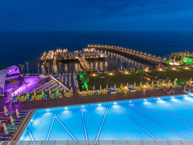 Kostenloser Service und Aktivitäten • In dem Ultra All-Inklusive Service sind begriffen: Die Hauptmahlzeiten, das Eis, Gözleme (türkische Speisen), das Vorspeisenservice, das Obstservice, die einheimischen und einige ausländischen alkoholischen und alkoholfreien Getränke, die Minibar und die a’la Carte Restaurants mit einmaliger Reservation • Schwimmbecken für Erwachsene und Kinder • Rutschennutzung für Kinder und Erwachsene • Eintritt in den Hamam, in die Sauna und in das Dampfzimmer • Abends mit Galathema, Strand-/Stegparty, Schaum Party • Fitnesszentrum, Teilnahme an Animationsaktivitäten • Mini Club für Kindern, Kinderwagen und Hochstuhl • Sonnenschirm, Sonnenliege, Strandhandtuch • Kabelloser Internetzugang auf den Zimmer und in den Haupträumen • Rollstuhl • Sicherheitstresor auf den Zimmern • Autopark und Parkservice • Willkommensgruss für Flitterwochenpaare, Geburtstage und Hochzeitstage Kostenpflichtige Services und Aktivitäten • Zimmerservice • Einige importierte Premiumgetränke, frisch gepresste Fruchtsäfte • Telefon, Fax • Die Produkte und Services, die in den Einkaufszentren gekauft werden • Dienstleistungen wie Massage, Peeling, Gesichtspflege, Wellness usw. • Wäsche waschen, bügeln • Die Nutzung von Wassersportausstattungen • Hochzeitsreisenpaket, Besondere Pakete für Geburtstage und Hochzeitstage • Bungalow (20 € pro tag)