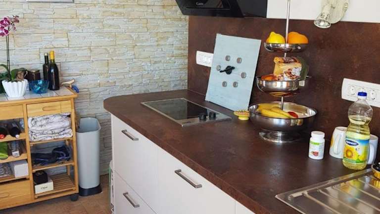 Das Ferienhaus verfügt über eine voll ausgestattete Küche mit Kühlschrank und Kaffeemaschine, sodass die Gäste ihre eigenen Mahlzeiten zubereiten können. Grillmöglichkeiten stehen ebenfalls zur Verfügung.