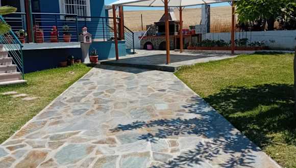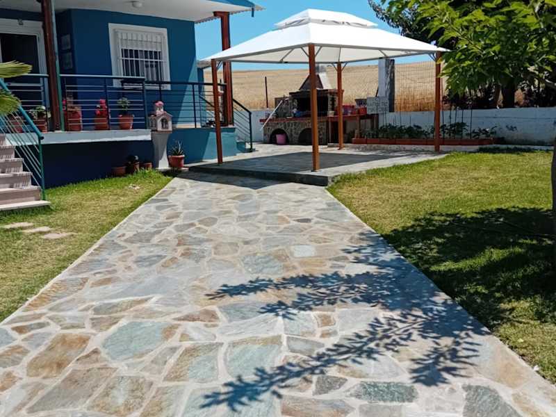 Mary's House Nea Potidaia bietet Übernachtungsmöglichkeiten in einem Ferienhaus mit einer Terrasse und Gartenblick.