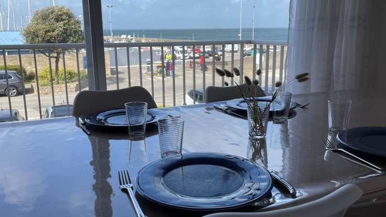 MARYLAND Sea View Port Haliguen Porigo Beach ist eine Ferienwohnung mit Meerblick, die modern eingerichtet ist und verschiedene Annehmlichkeiten bietet. Die Unterkunft verfügt über einen Balkon, ein Fitnesscenter, ein Casino und einen Tennisplatz. Zudem stehen kostenfreie Parkplätze zur Verfügung.