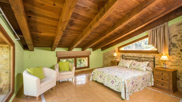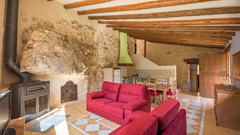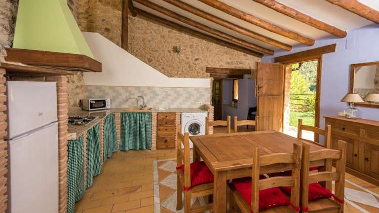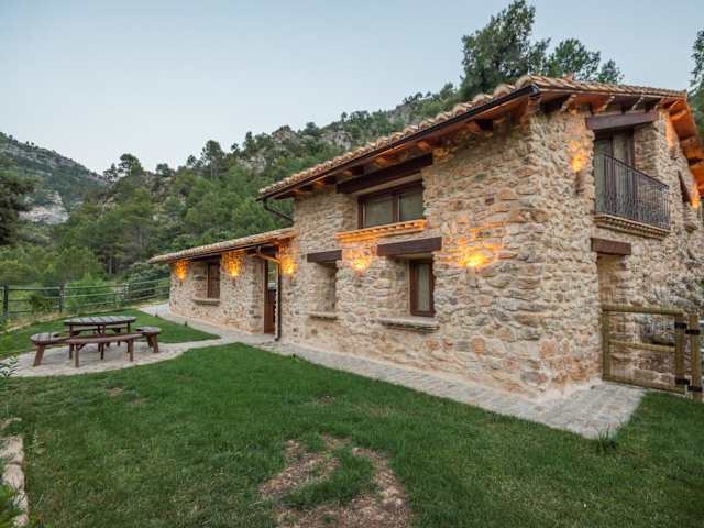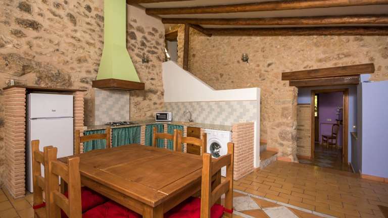 Das Mas De Rogelio erstreckt sich über 2 Etagen und verfügt über 3 gemütliche Schlafzimmer. Ein Schlafzimmer ist mit einem Kamin ausgestattet, der für eine behagliche Atmosphäre sorgt. Es gibt auch 2 Badezimmer, die Ihren Aufenthalt angenehm gestalten. Das Haus verfügt über traditionelle Elemente wie freiliegende Steinmauern und Holzbalken, die dem Interieur einen rustikalen Charme verleihen. Die Küche ist gut ausgestattet mit einer Mikrowelle, einem Kühlschrank, einem Kochfeld und einer Kaffeemaschine. Ein Flachbild-TV steht Ihnen ebenfalls zur Verfügung.