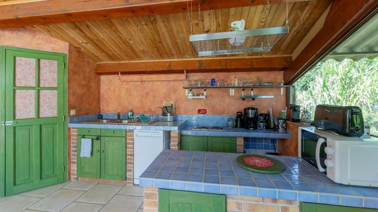 Das Ferienhaus ist ausgestattet mit Bettwäsche, Handtüchern und einem TV mit Kabelkanälen. Die voll ausgestattete Küche ermöglicht eine eigenständige Versorgung. Eine Terrasse mit Bergblick und ein Garten mit Grillmöglichkeiten vervollständigen die Ausstattung.