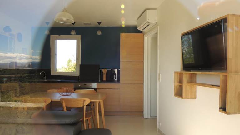 Das klimatisierte Ferienhaus im Mas Les Romarins verfügt über 2 Schlafzimmer, ein Wohnzimmer, eine voll ausgestattete Küche und ein Badezimmer. Jedes Zimmer ist komfortabel und stilvoll eingerichtet und bietet einen eigenen Balkon mit Blick auf die Berge. Die Küche ist mit einem Kühlschrank und einer Kaffeemaschine ausgestattet. Handtücher und Bettwäsche werden gestellt. WLAN ist im gesamten Ferienhaus kostenlos verfügbar.