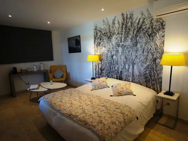 Mas Lou Caloun - Chambre d'Hôte ist eine Unterkunft mit saisonalem Außenpool, Garten und Terrasse. Die Räumlichkeiten sind mit kostenlosem WLAN ausgestattet und bieten einen Blick auf den Pool. Die Unterkunft verfügt über einen kostenlosen Privatparkplatz.