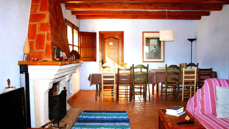 Das Mas Saris verfügt über 4 Schlafzimmer, darunter 2 Vierbettzimmer und 2 Zweibettzimmer. Die Zimmer sind geräumig und komfortabel eingerichtet und bieten Platz für größere Gruppen oder Familien. Das Badezimmer ist mit einer Dusche ausgestattet und im oberen Stockwerk gibt es einen großen Balkon, der einen herrlichen Ausblick bietet. Das Wohnzimmer ist hell und geräumig und verfügt über ein bequemes Sofa und einen Flachbild-TV. Die Küche ist gut ausgestattet mit einem Geschirrspüler, einem Ofen, einem Cerankochfeld und einer Mikrowelle. Auf der Außenterrasse finden Sie einen Esstisch, an dem Sie Ihre Mahlzeiten im Freien genießen können.