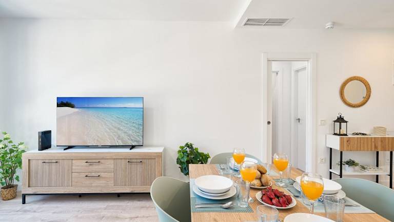 Die Ferienwohnung verfügt über Klimaanlage und besteht aus 1 Schlafzimmer, einem Wohnzimmer sowie einer voll ausgestatteten Küche, die mit einem Kühlschrank und einer Kaffeemaschine ausgestattet ist. Zudem gibt es ein Badezimmer, das mit einer Dusche und einem Haartrockner versehen ist. Zur technischen Ausstattung gehört ein TV.