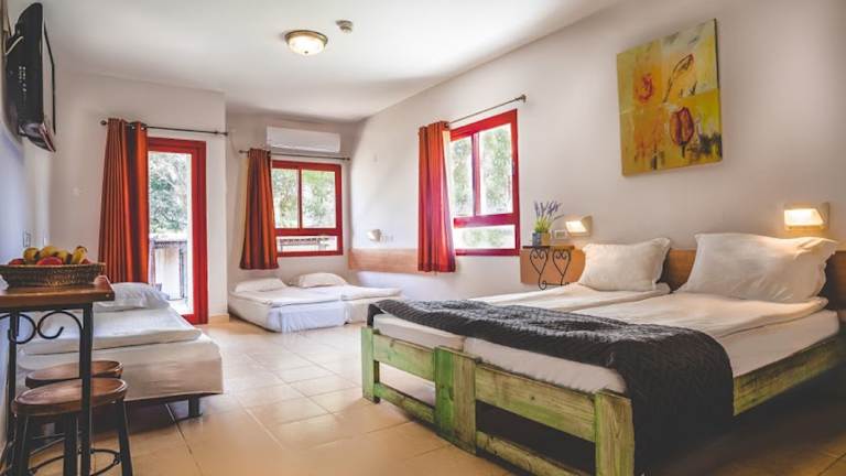 Das Mashabei Sade Kibbutz Country Lodging verfügt über 82 komfortable Zimmer, die Ihnen einen angenehmen Aufenthalt bieten. Jedes Zimmer ist mit einer individuell steuerbaren Klimaanlage und Heizung ausgestattet, um Ihnen das ideale Raumklima zu bieten. Ein Balkon gehört zum Standard und bietet Ihnen die Möglichkeit, die frische Luft und die Aussicht auf die grüne Umgebung zu genießen. Zur Ausstattung gehören auch ein Minikühlschrank, eine Tee-/Kaffeemaschine, ein Safe und ein TV-Gerät mit Satelliten-/Kabelempfang. Einige der rollstuhlgerechten Zimmer verfügen über ein barrierefreies Bad.