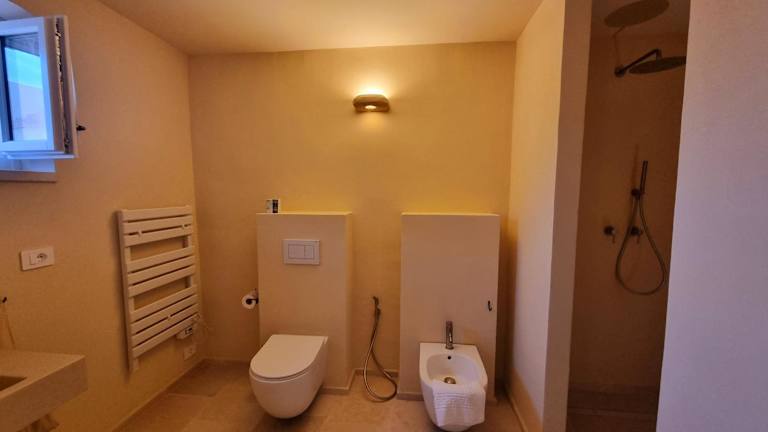 Alle Zimmer sind mit einem eigenen Badezimmer mit Bidet, kostenlosen Pflegeprodukten und einem Haartrockner ausgestattet.