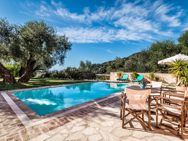Die Mastrogiannis Villa Dafne in Kavvadádes ist ein wunderschönes Ferienhaus, das Ihnen einen entspannten Aufenthalt mit atemberaubendem Meerblick bietet. Genießen Sie den saisonalen Außenpool, den Garten und die Terrasse sowie die Annehmlichkeiten wie kostenfreies WLAN und kostenfreie Privatparkplätze. Die klimatisierte Villa verfügt über 3 Schlafzimmer, ein geräumiges Wohnzimmer und eine voll ausgestattete Küche. Grillmöglichkeiten sind ebenfalls vorhanden. Das freundliche Personal steht Ihnen rund um die Uhr zur Verfügung und eine Autovermietung ist ebenfalls verfügbar. Erkunden Sie die Umgebung und besuchen Sie Sehenswürdigkeiten wie Angelokastro und den Hafen von Korfu, die beide in kurzer Entfernung liegen. Der internationale Flughafen Korfu ist nur 33 km entfernt.