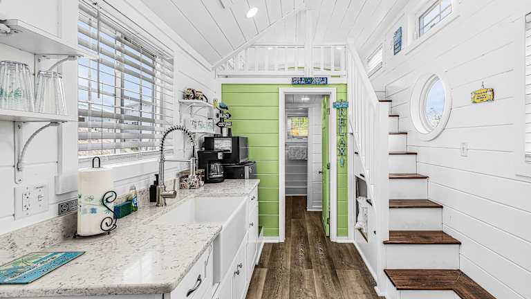 Die Unterkunft im Matlacha Tiny Village besteht aus einem Ferienhaus mit Meerblick. Das Ferienhaus verfügt über eine Terrasse, auf der Sie die schöne Aussicht genießen können. Im Inneren finden Sie einen gemütlichen Sitzbereich und einen Flachbild-TV. Die voll ausgestattete Küchenzeile bietet alles, was Sie für die Zubereitung Ihrer Mahlzeiten benötigen, einschließlich eines Kühlschranks, einer Mikrowelle, eines Kochfelds und einer Kaffeemaschine. Das private Badezimmer ist mit einer Dusche ausgestattet.