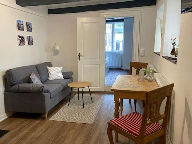 Die Ferienwohnung verfügt über ein Schlafzimmer, eine Küche, die mit einem Kühlschrank und einem Ofen ausgestattet ist. Zur weiteren Ausstattung gehören ein Flachbild-TV, ein Sitzbereich und ein Badezimmer mit Dusche. Handtücher und Bettwäsche werden in der Ferienwohnung bereitgestellt.
