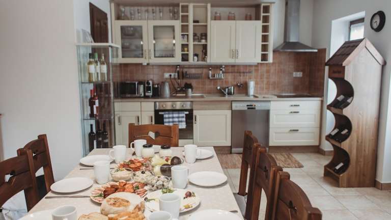 Im Maushaus steht den Gästen eine Gemeinschaftsküche zur Verfügung, in der sie ihre eigenen Mahlzeiten zubereiten können. Es gibt auch Grillmöglichkeiten im Garten, so dass Sie im Freien kochen und essen können. In der Umgebung gibt es auch verschiedene Restaurants und Cafés, in denen Sie lokale Spezialitäten und internationale Gerichte genießen können.