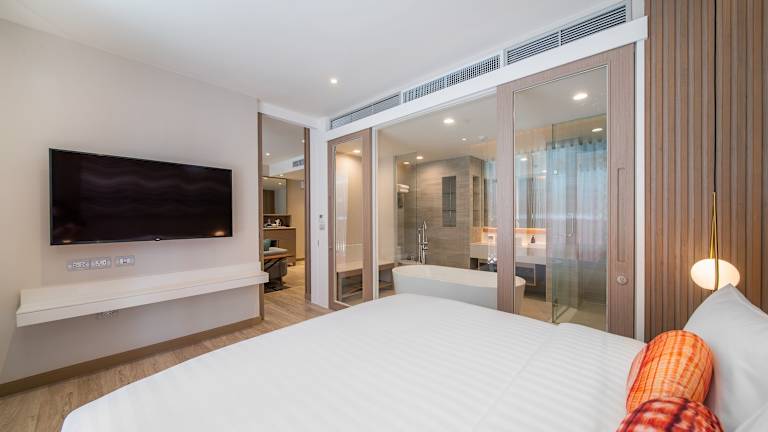 Die Zimmer sind mit einer Klimaanlage, einem Kleiderschrank, einem Flachbild-TV und einem eigenen Badezimmer ausgestattet. Jedes Zimmer bietet einen Balkon mit Stadtblick, einen Safe, Bettwäsche und Handtücher. Die Ausstattung umfasst zudem eine Tee-/Kaffeemaschine, einen Schreibtisch sowie eine Installation für die Bereitstellung von Kosmetikartikeln und Handtüchern im Badezimmer. Rollstuhlgerechte Zimmer sind auch verfügbar.