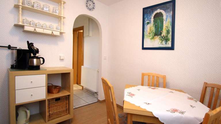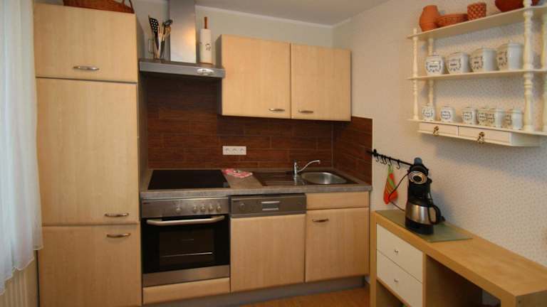 Eine gut ausgestattete Küchenzeile mit einem Kühlschrank und einem Geschirrspüler ermöglicht es, sich selbst zu versorgen. Es stehen Grillmöglichkeiten vor Ort bereit, um ein Grillessen im Freien zu genießen.