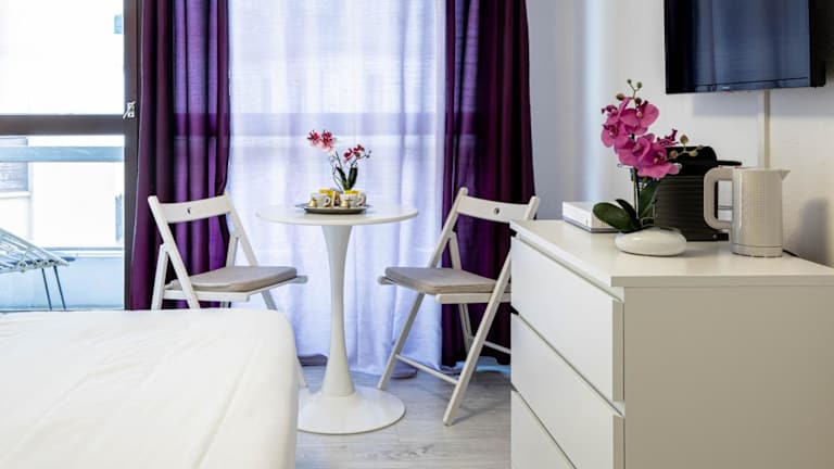Das Studio bietet Übernachtungsmöglichkeiten mit einem Balkon. Die Zimmer sind mit Annehmlichkeiten wie Klimaanlage und Heizung ausgestattet, und es stehen Internetverbindungen und ein Aufzug zur Verfügung.