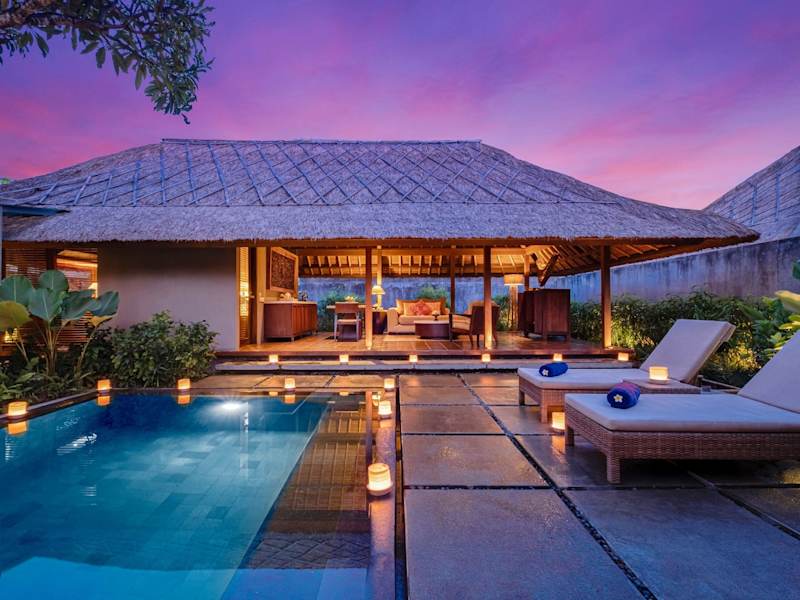 Die Mayaloka Villas in Seminyak bieten romantische Unterkünfte im traditionellen balinesischen Stil. Jede Villa verfügt über einen eigenen Pool und ist von einem grünen tropischen Garten umgeben. Das Hotel bietet kostenloses WLAN und einen kostenlosen Shuttleservice innerhalb von Seminyak. Die Lage ist ideal, nur einen kurzen Spaziergang vom Strand Petitenget und einer kurzen Fahrt vom Geschäftsviertel von Seminyak entfernt. Die Mayaloka Villas bieten auch einen umfangreichen Service mit Autovermietung, Conciergeservice und einem Express-Check-in. Genießen Sie ein amerikanisches Frühstück am Morgen und entspannen Sie sich in Ihrer Villa nach einem Tag voller Erkundungen.