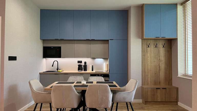 Die Wohneinheiten sind mit einem Sitzbereich, einem Satelliten-Flachbild-TV, einer voll ausgestatteten Küche mit Kühlschrank, Geschirrspüler, Ofen, Mikrowelle und Herdplatte ausgestattet. Ein eigenes Badezimmer mit Dusche und Haartrockner ist ebenfalls vorhanden.