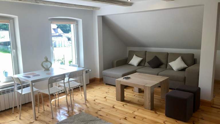 Die Unterkünfte im Mazurski Dom sind geräumig und komfortabel eingerichtet. Jede Wohneinheit verfügt über ein Schlafsofa, einen Flachbild-Sat-TV und eine gut ausgestattete Küche mit einem Kühlschrank, einem Kochfeld und einem Wasserkocher. Das private Badezimmer ist mit einer Dusche ausgestattet. Kostenloses WLAN steht den Gästen zur Verfügung und Privatparkplätze sind ebenfalls vorhanden.