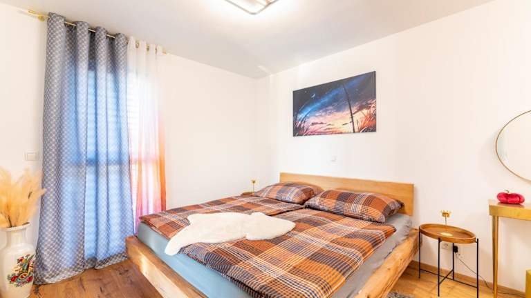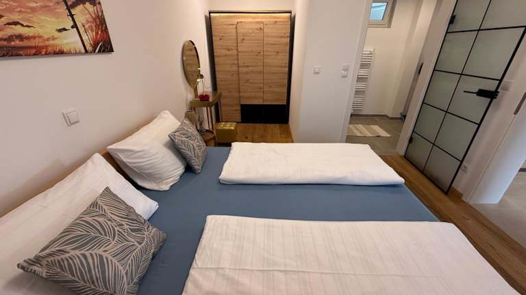 Das Ferienhaus bietet zwei Schlafzimmer, ein Wohnzimmer mit Flachbild-TV sowie ein Badezimmer mit Dusche. Die Küche ist mit einem Kühlschrank und einem Geschirrspüler ausgestattet. Handtücher und Bettwäsche werden bereitgestellt.