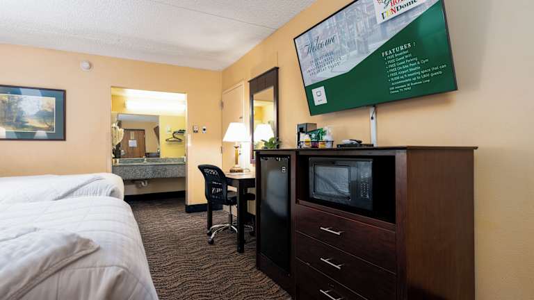 Die 245 Zimmer des Hotels bieten modernen Komfort und sind mit Kühlschrank und Mikrowelle ausgestattet. Die Betten verfügen über hochwertige Bettwaren und in den Badezimmern finden Sie Duschwannen, Designer-Toilettenartikel und Haartrockner. Für zusätzlichen Komfort stehen Ihnen ein Memory-Foam-Bett und ein 50-Zoll-Flachbildfernseher mit Kabelempfang zur Verfügung.