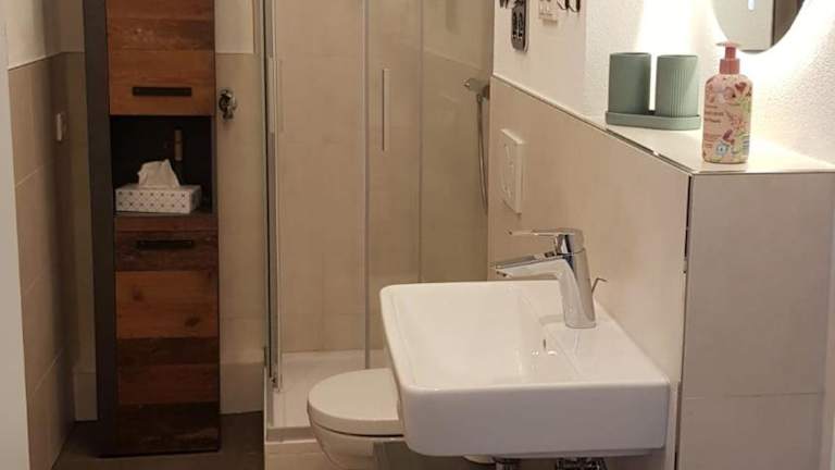 Die Ferienwohnung verfügt über ein Schlafzimmer, ein Badezimmer mit Dusche und Haartrockner sowie eine Küche. Handtücher und Bettwäsche werden bereitgestellt.