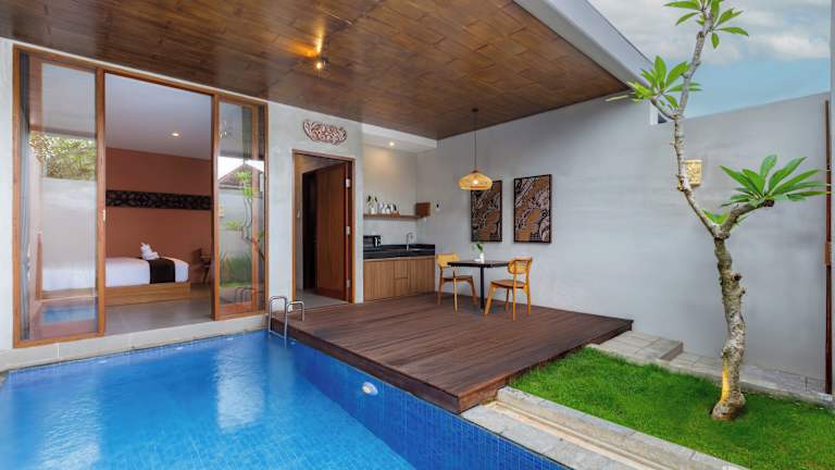 ME Villas Pererenan, Canggu bietet Übernachtungsmöglichkeiten in Form von Villen mit eigenem Pool und Terrasse. Die Unterkunft ist modern und gepflegt, mit Annehmlichkeiten wie einem kostenlosen Privatparkplatz und Zimmerservice. WLAN ist in der gesamten Villa kostenlos verfügbar.