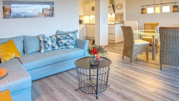 Die Ferienwohnung verfügt über ein Schlafzimmer, ein Wohnzimmer und ein Badezimmer mit einer Dusche. Zur Ausstattung gehören ein Flachbild-TV sowie eine gut ausgestattete Küche mit Kühlschrank und Geschirrspüler. Handtücher und Bettwäsche können gegen Aufpreis bereitgestellt werden.