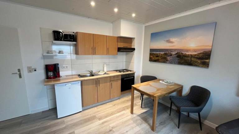 Die Ferienwohnung besteht aus 1 Schlafzimmer und einem Wohnzimmer. Die voll ausgestattete Küche beinhaltet einen Kühlschrank und eine Kaffeemaschine. Das Badezimmer ist mit einer Dusche und einem Haartrockner ausgestattet. Handtücher und Bettwäsche werden bereitgestellt.