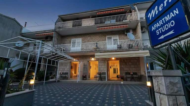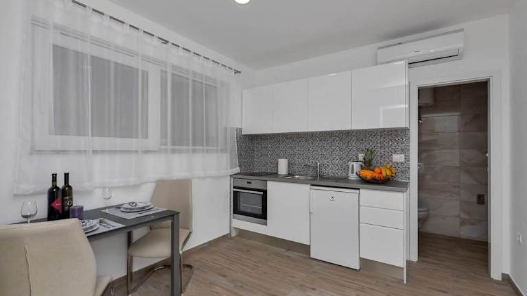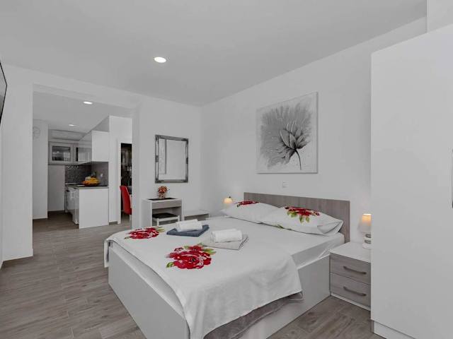 Das Apartman-Studio Meri bietet Selbstversorgungsmöglichkeiten mit einer voll ausgestatteten Küche in jedem Zimmer. Sie haben die Freiheit, Ihre eigenen Mahlzeiten zuzubereiten und Ihre Zeit nach Ihren eigenen Vorstellungen zu gestalten. In der Umgebung gibt es auch eine Vielzahl von Restaurants und Cafés, in denen Sie lokale Spezialitäten und internationale Küche genießen können.