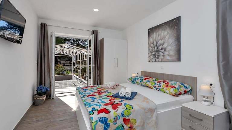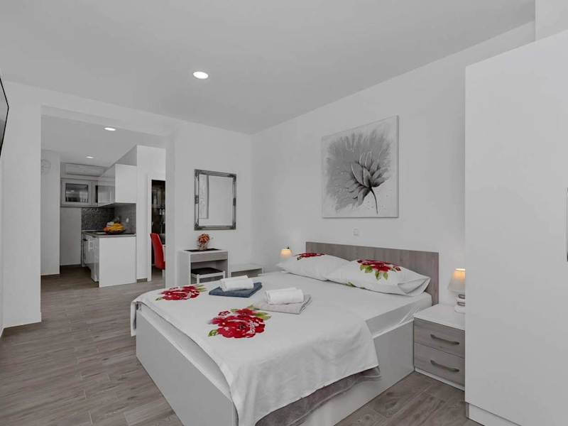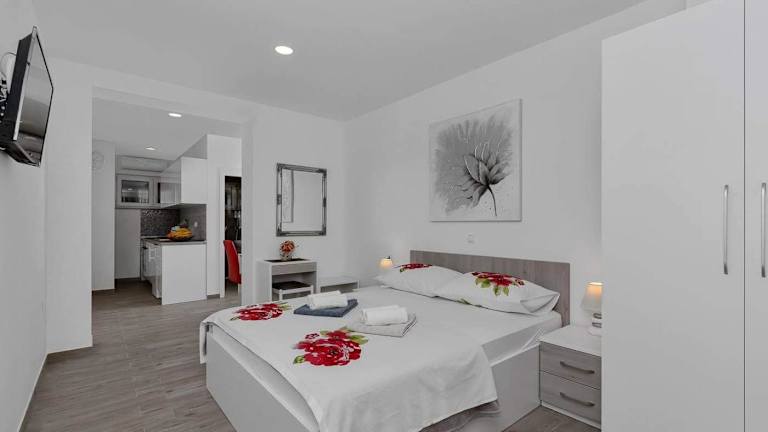 Die klimatisierten Zimmer im Apartman-Studio Meri sind gemütlich und komfortabel eingerichtet. Jedes Zimmer verfügt über eine voll ausgestattete Küche, in der Sie Ihre eigenen Mahlzeiten zubereiten können. Der Flachbild-TV sorgt für Unterhaltung und das private Badezimmer ist mit einer Dusche, kostenfreien Pflegeprodukten und einem Haartrockner ausgestattet. Genießen Sie den Blick auf den Garten von der Terrasse aus, die zu jedem Zimmer gehört.