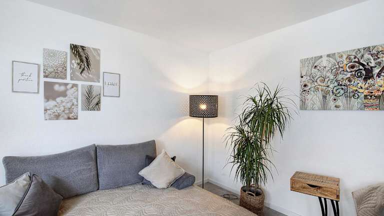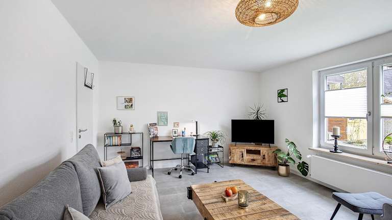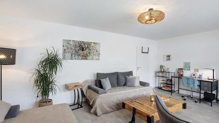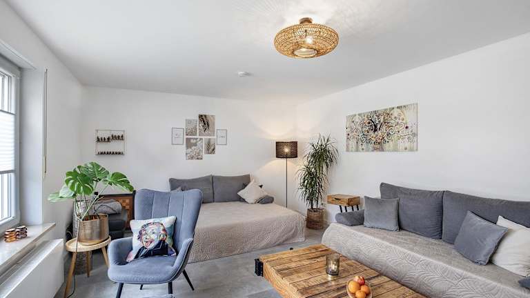 Die Ferienwohnung umfasst ein Schlafzimmer, ein Wohnzimmer sowie eine voll ausgestattete Küche. Diese ist mit einem Kühlschrank und einer Kaffeemaschine ausgestattet. Des Weiteren verfügt die Unterkunft über ein Badezimmer mit Dusche und kostenlosen Pflegeprodukten. Handtücher und Bettwäsche sind ebenfalls im Angebot enthalten.