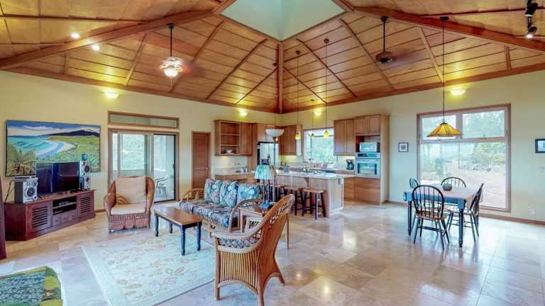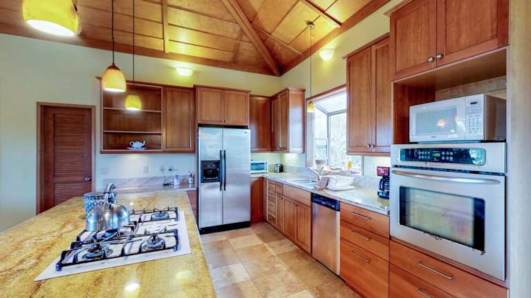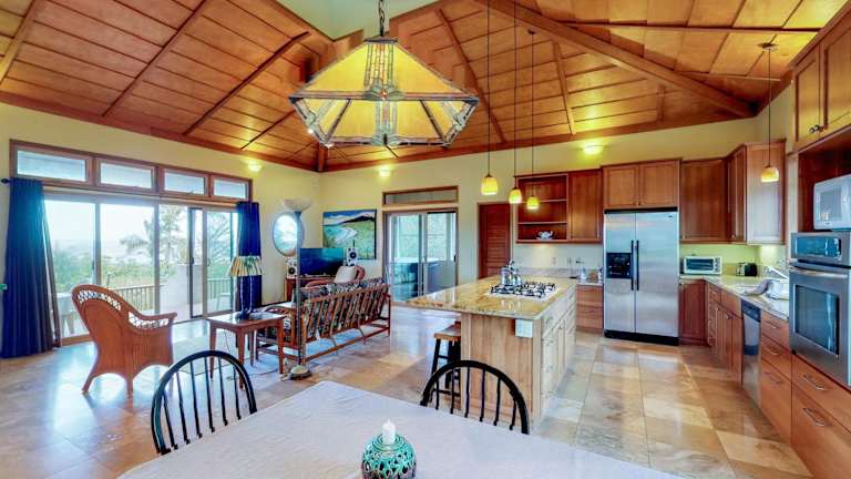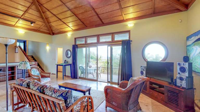 Das Mele Kai Ferienhaus verfügt über 3 Schlafzimmer und 3 Badezimmer, die alle mit Bettwäsche und Handtüchern ausgestattet sind. Der Wohnbereich ist geräumig und bietet einen komfortablen Platz zum Entspannen. Es gibt auch einen Essbereich und eine voll ausgestattete Küche, in der Gäste ihre eigenen Mahlzeiten zubereiten können. Die Terrasse bietet einen schönen Poolblick und ist der perfekte Ort, um die warmen Abende zu genießen.