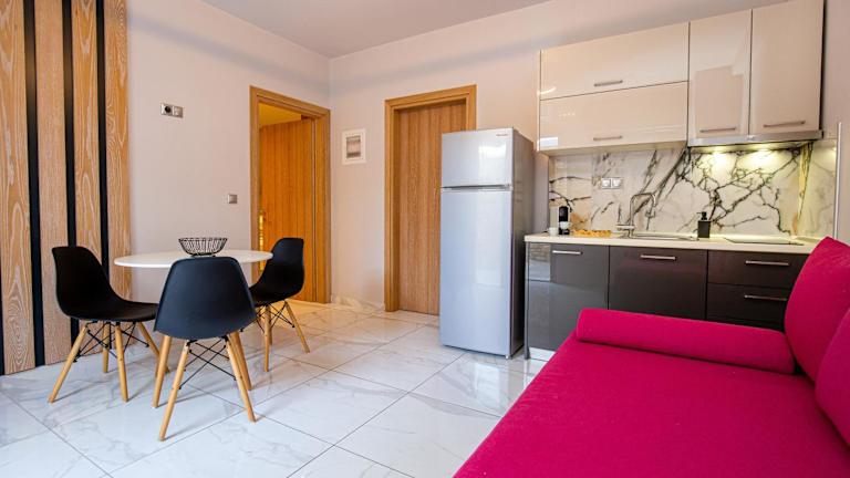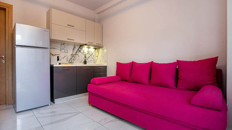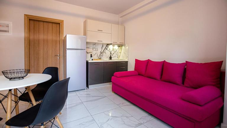 Die Zimmer im Meli Boutique Hotel sind klimatisiert und verfügen über moderne Annehmlichkeiten, die Ihren Aufenthalt so angenehm wie möglich machen. Jedes Zimmer ist mit Fliesenböden, einem eigenen Bad, einem Flachbild-TV, kostenfreiem WLAN, einem Kleiderschrank, einem Wohnzimmer, einer voll ausgestatteten Küche, einem Balkon und einem atemberaubenden Meerblick ausgestattet. Zusätzlich gibt es einen Kühlschrank, ein Kochfeld, einen Wasserkocher und eine Kaffeemaschine für Ihre Bequemlichkeit.