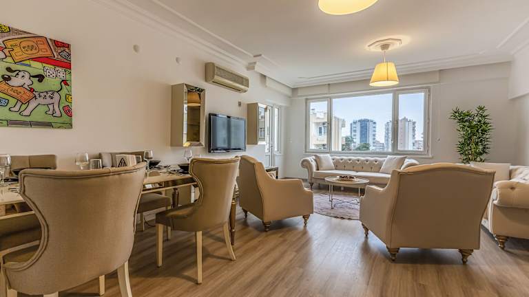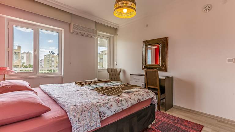 Die Unterkunft befindet sich in Antalya, in unmittelbarer Nähe zum Strand Lara Halk Plaji, welcher etwa 700 m entfernt ist. Die Sehenswürdigkeiten Hadrianstor und Uhrenturm liegen jeweils 12 km entfernt. Der Flughafen Antalya ist 5 km von der Unterkunft entfernt und ein kostenpflichtiger Flughafentransfer steht zur Verfügung.