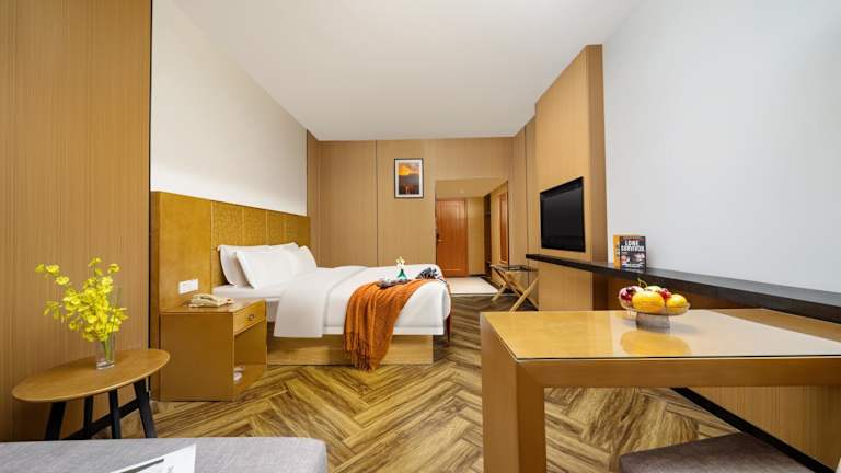 Super zentral direkt am Bahnhof / und Busbahnhof von Changsha , viele Restaurants , Geschäfte und Banken um die Ecke . Personal etwas lustlos und kein kostenloses Trinkwasser auf dem Zimmer. Hotel etwas in die Jahre gekommen.