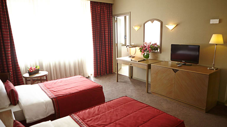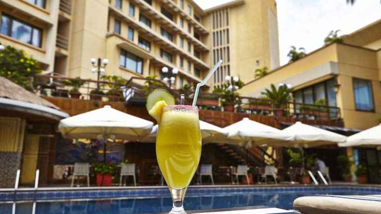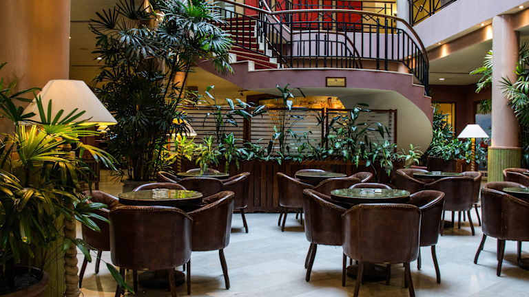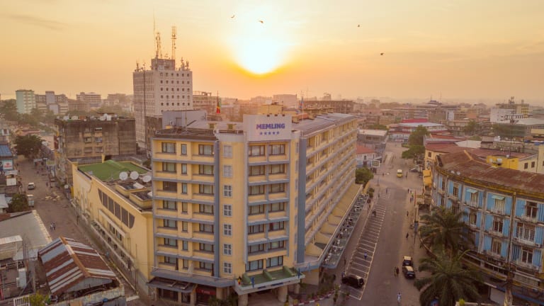 Das Hotel Memling in Kinshasa bietet Ihnen einen angenehmen Aufenthalt mit kostenfreiem WLAN und einem Außenpool. Genießen Sie den Komfort der klimatisierten Zimmer und den Blick auf den Pool. Beginnen Sie Ihren Tag mit einem leckeren Frühstück und entspannen Sie sich im Fitnesscenter oder auf der Sonnenterrasse. Das Hotel bietet auch eine Bar und ein Restaurant für Ihre kulinarischen Bedürfnisse. Der internationale Flughafen Ndjili ist nur 23 km entfernt, und das Hotel bietet einen Flughafentransfer an.