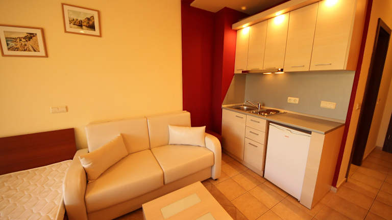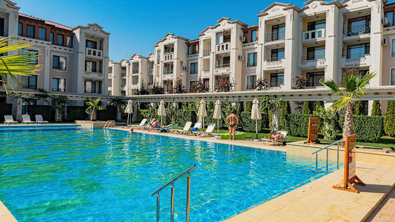 Die Menada Kavaci Sozopol Apartments bieten eine ideale Lage, nur 300 m vom Sandstrand in Kavaci und 3 km von Sozopol entfernt. Entspannen Sie am großen Außenpool oder genießen Sie eine Erfrischung an der Café-Bar. Die gut ausgestatteten Apartments verfügen über eine Küchenzeile und einen Balkon. Trainieren Sie im Fitnesscenter oder spielen Sie Tennis und Basketball. Das À-la-carte-Restaurant verwöhnt Sie mit europäischer und bulgarischer Küche. Nutzen Sie den Shuttleservice in die Stadt Sozopol oder mieten Sie ein Auto an der Rezeption.