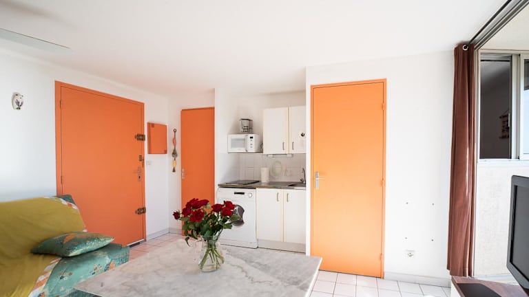 Das Mer à L'horizon - Appt pour 4 proche plage befindet sich in Leucate, nur 1 km von Plage de l'Argonautes und 25 km vom Stade Gilbert Brutus entfernt. Der Strand Aqualand und der Strand Port Leucate sind nur wenige Schritte entfernt, während das Naturschutzgebiet Africaine de Sigean 32 km entfernt liegt. Das Königsschloss Collioure erreichen Sie nach 47 km. Der nächste Flughafen ist der Flughafen Perpignan-Rivesaltes, der 26 km vom Apartment entfernt ist.