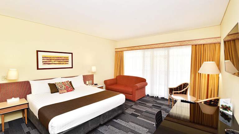 Das Mercure Alice Springs Resort verfügt über insgesamt 139 Zimmer, die alle klimatisiert sind und über eine Minibar, Sat-TV und kostenfreies WLAN verfügen. Die Deluxe Zimmer bieten zusätzlich eine Espressomaschine und einen Balkon mit Blick auf den Fluss.