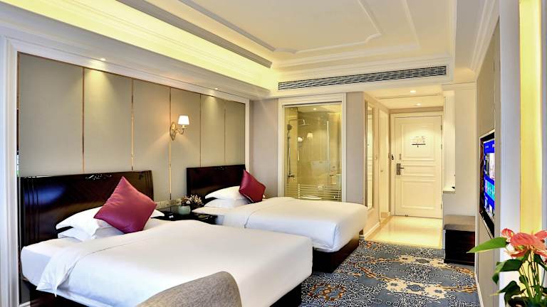 Die Zimmer im Hotel Mercure Hangzhou Liping sind komfortabel und gut ausgestattet. Jedes Zimmer verfügt über eine Klimaanlage, eine Minibar und einen Flachbildfernseher. WLAN ist gegen Gebühr verfügbar. Im Badezimmer finden Sie eine Dusche und einen Haartrockner. Das Hotel bietet auch rollstuhlgerechte Zimmer für Gäste mit eingeschränkter Mobilität.