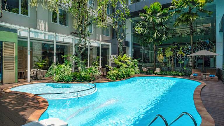 Das Mercure Jakarta Sabang ist ein modernes Hotel in zentraler Lage in Jakarta. Hier erwartet Sie ein komfortabler Aufenthalt mit einem Außenpool und kostenfreiem WLAN. Das Hotel bietet auch kostenlose Privatparkplätze und eine 24-Stunden-Rezeption. Die Zimmer sind stilvoll eingerichtet und verfügen über eine Klimaanlage, einen Flachbild-Kabel-TV und ein eigenes Bad. Das hoteleigene Restaurant bietet eine Auswahl an internationalen Gerichten. Die Lage des Hotels ermöglicht es Ihnen, die Sehenswürdigkeiten von Jakarta bequem zu erkunden.